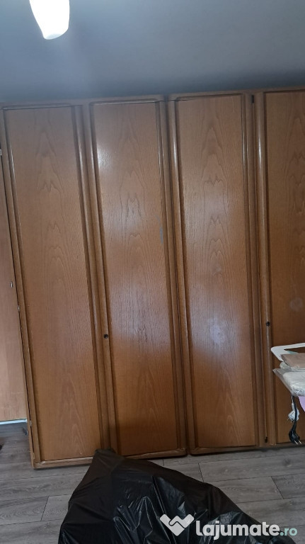 mobila dormitor modulara, dulap 3m latime 2m inaltime 3 compartimente, pat cu saltea noua 200x200, do ...