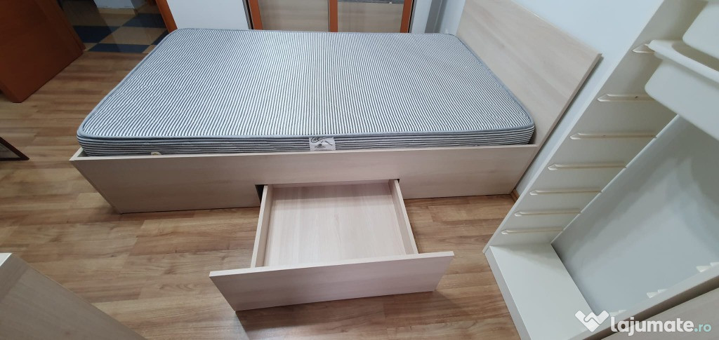 Pat o persoană cu saltea și sertar (HxLxl 36x205x125 cm, înălțime tăblie pat 81 cm) - 500 RON