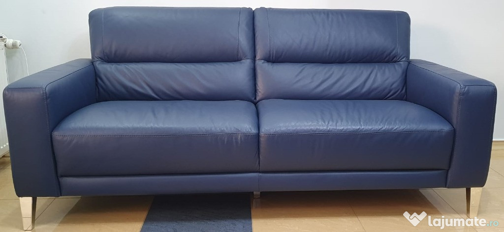 canapea piele albastră (HxLxl 85x188x90 cm) - 1.500 RON