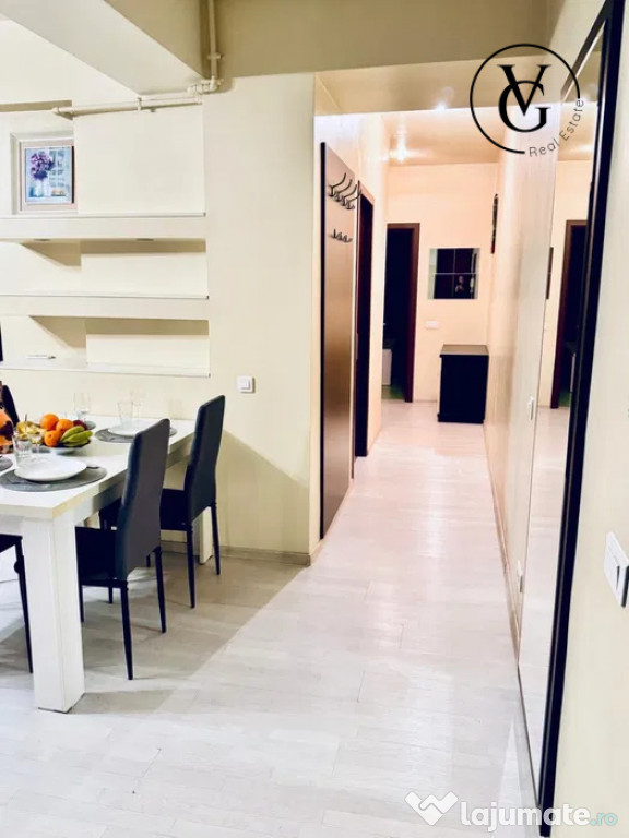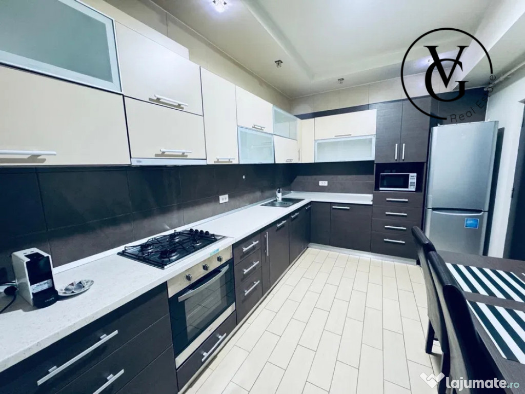 VG Real Estate vă propune spre închiriere un apartament modern de 2 camere, cu o suprafață generoasă de 80 mp, situat la etajul 9 într-un imobil construit după 2010.Locuința beneficiază de o compartimentare semidecomandată, finisaje de calitate și multă lumină naturală pe tot parcursul zilei. Este complet mobilată cu piese contemporane, iar bucătăria este echipată cu electrocasnice moderne, oferind tot confortul necesar pentru mutarea imediată.