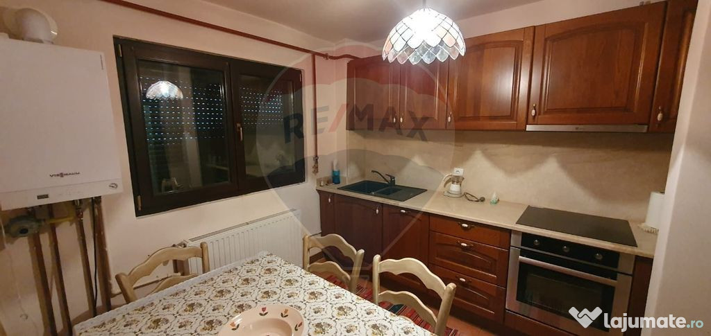 Bucataria beneficiaza de mobilier din lemn masiv si electrocasnice(inclusiv masina spalat vase) de ultima generatie.