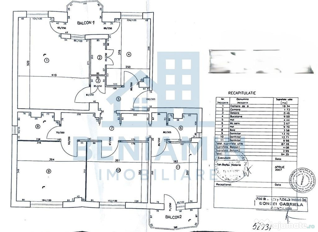 Acesta are o suprafata totala de 95mp si este compus din Living, bucatarie, 3 dormitoare, doua bai si doua balcoane.