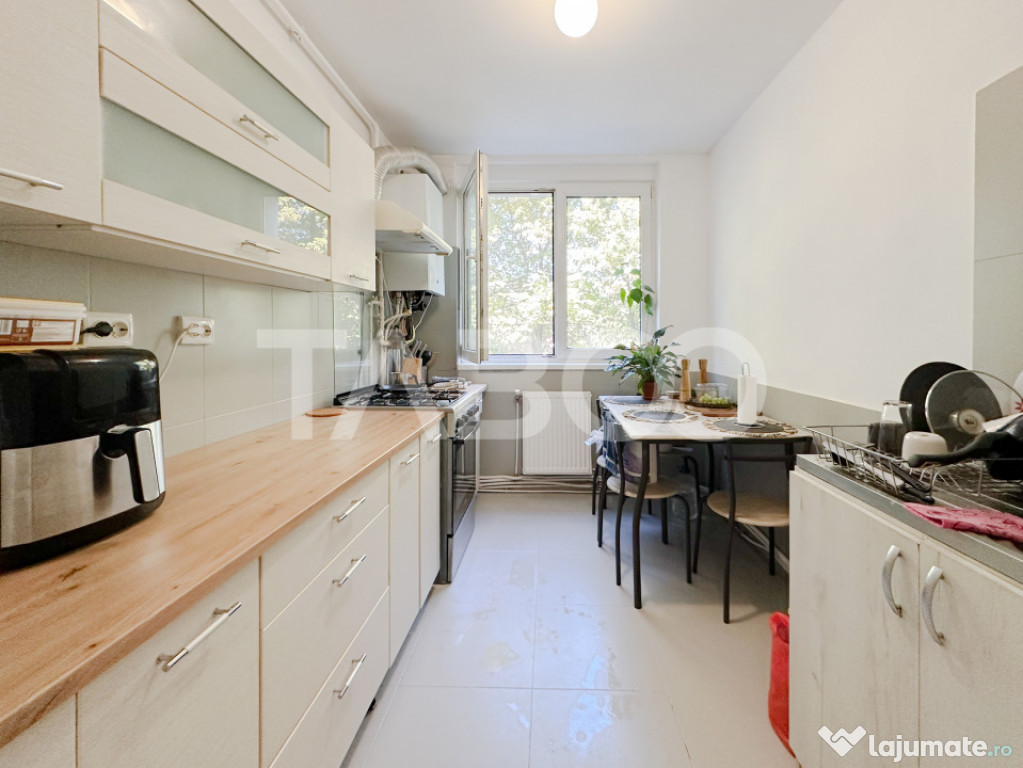 Apartamentul se vinde mobilat si utilat cu:aragaz, cuptor, hota, masina de spalat rufe, frigider cu congelator, TV..
