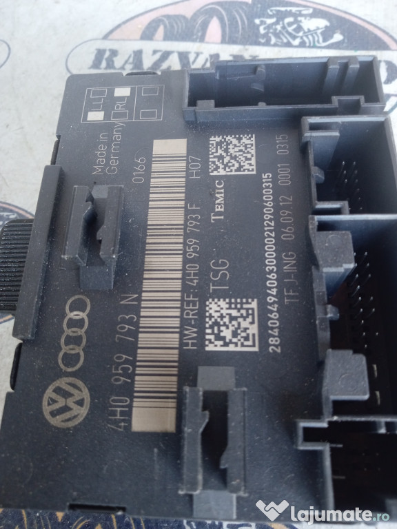 Modul Portiera Dreapta Fata Volkswagen Touareg 2012. Cod(uri): 4H0959793B. Piesele comercializate sunt originale, provenite din dezmembrari. Dispunem de o gama larga de piese multimarca. Piesele sunt verificate inainte de a fi puse spre vanzare. In caz de neconformitate piesa se poate returna. Va rugam sa verificati disponibilitatea pieselor telefonic. Trimitem in tara prin curier.Marcă: Volkswagen