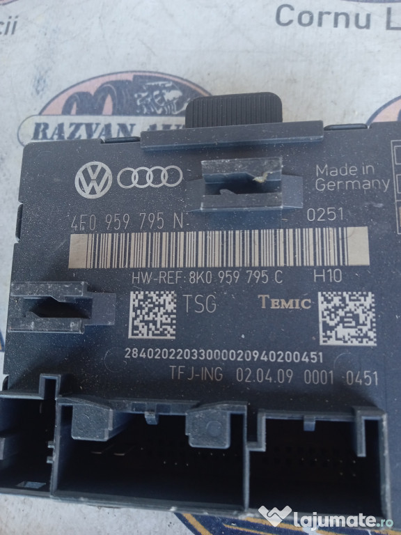 Modul Portiera Dreapta Spate Audi A4 B8. Cod(uri): 4F0959795N. Piesele comercializate sunt originale, provenite din dezmembrari. Dispunem de o gama larga de piese multimarca. Piesele sunt verificate inainte de a fi puse spre vanzare. In caz de neconformitate piesa se poate returna. Va rugam sa verificati disponibilitatea pieselor telefonic. Trimitem in tara prin curier.Marcă: Audi