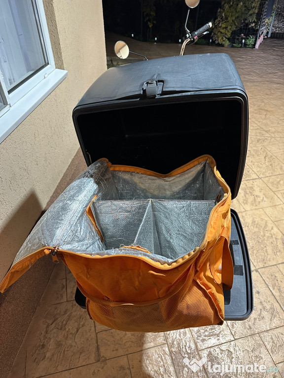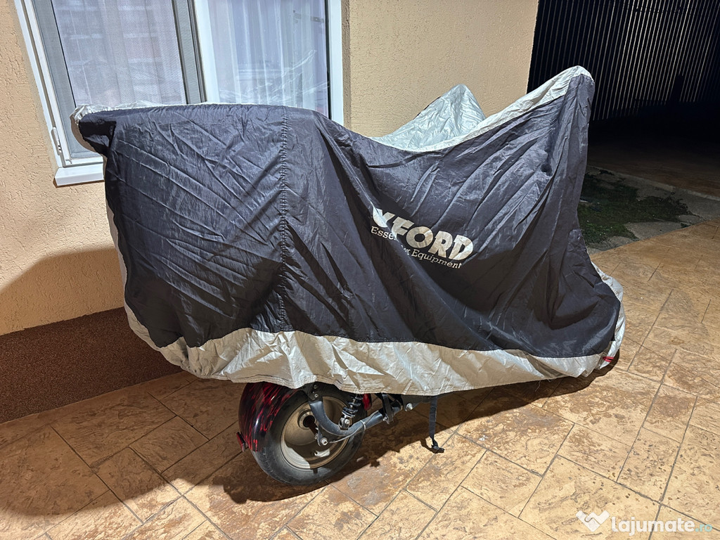 Bonus: două cauciucuri de pe un scuter mai vechi în stare bună, geantă pentru livrări care încape perfect în cutie(geanta ar trebui curățată), husă Oxford pentru ploaie și antifurt.