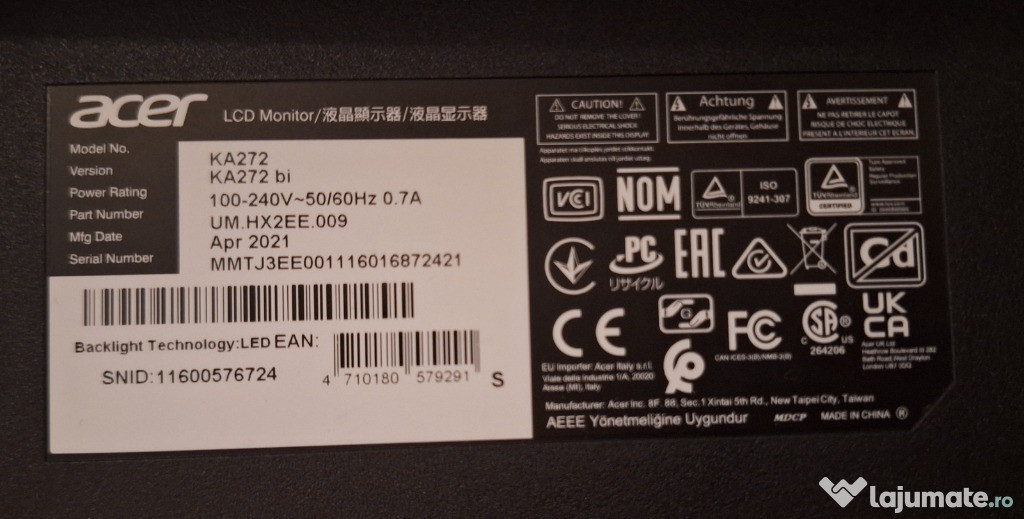 Anuntul Monitor Acer 27", KA272bi, LED IPS, FHD, 75Hz, 1ms, FreeSync este adaugat de pe LaJumate.ro.