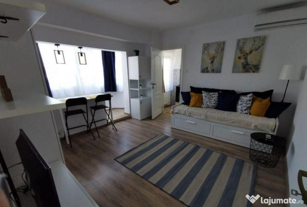 garsoniera, zona Oraselul Copiilor, Bd. Constantin BRANCOVEANU, 7 min de mers pe jos de la metrou. Renovata, mobilata si utilata complet (frigider, cuptor, plita pe gaz, TV, masina de spalat, AC inverter), etaj 5, bloc 1988, vedere in spatele blocului, incalzire Termoenergetica. Fără loc de parcare, dar cu posibilitatea de parcare pe bulevard. Disponibila imediat.Nu accepta animale.