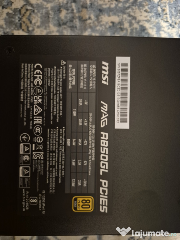 MSI MAG A850GL 850W 80 PLUS Gold White (306-7ZP8A24-CE0). nou. nefolosit!Anuntul MSI MAG A850GL 850W 80 PLUS Gold White (306-7ZP8A24-CE0) este adaugat de pe LaJumate.ro.