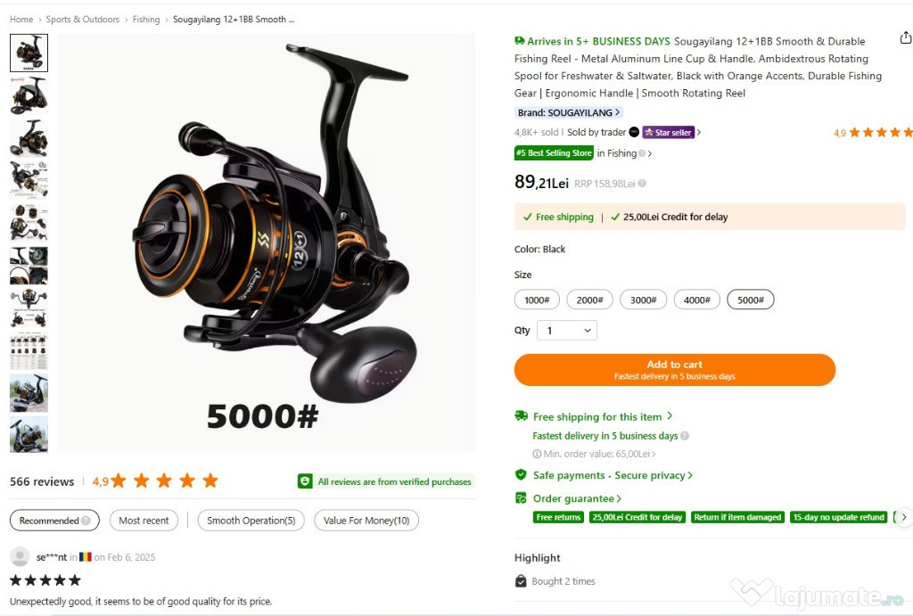 Anuntul Mulineta pescuit SOUGAYILANG FQ5000 este adaugat de pe LaJumate.ro.