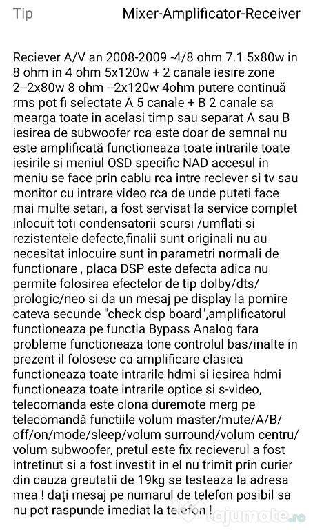 Anuntul NAD T755 reciever A/V este adaugat de pe LaJumate.ro.