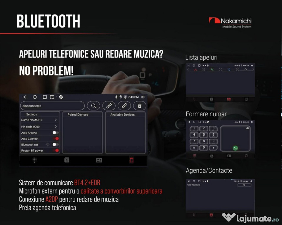 • Bluetooth pentru apeluri hands-free și redare muzică în siguranță