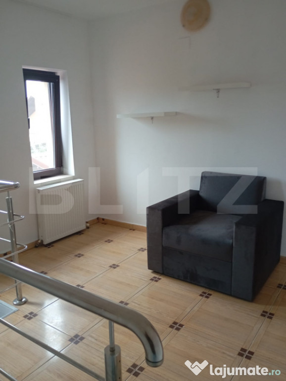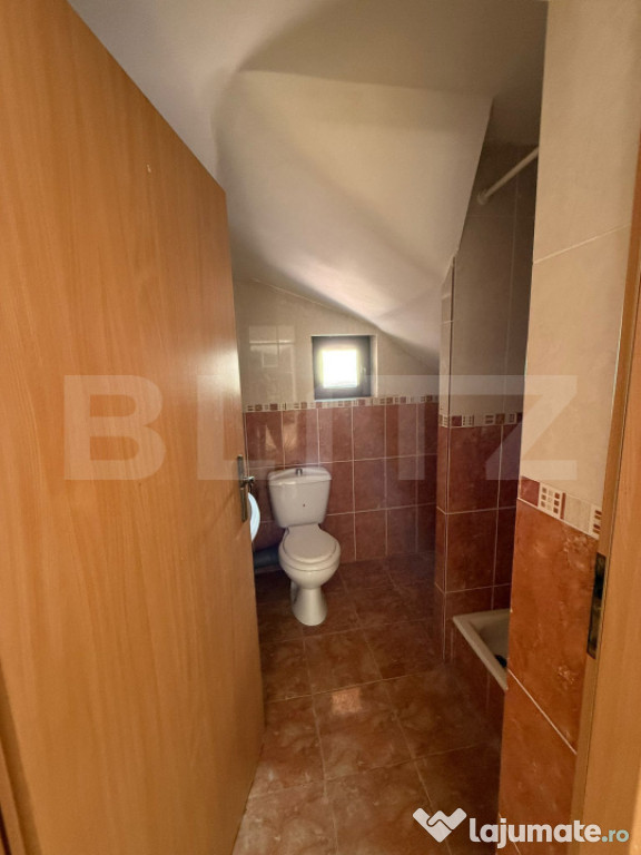 Blitz vă propune spre vânzare o casă spațioasă cu 3 dormitoare, living open space cu bucătărie, parter + mansardă, 150 mp utili, complet mobilată și utilată – situată în proximitatea orașului.Această proprietate este ideală pentru o familie care caută confort, funcționalitate și liniște, fără a renunța la accesul facil către oraș.