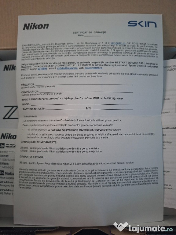 Aparat foto nou cu act de proveniență si garanție.Doresc sa îl vînd deoarece fotografia nu se află in zona mea de interes.Anuntul Nikon Mirrorless Z5 Body este adaugat de pe LaJumate.ro.