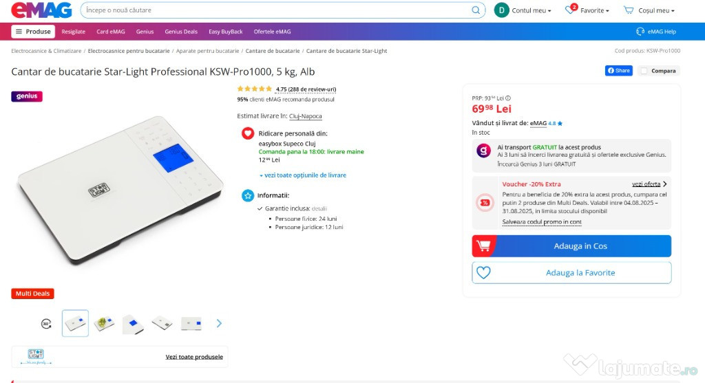 Cantar Starlight KWS-PRO1000 in stare excelenta pentru cantarit alimente , cu functia de calorii.Anuntul Cantar de bucatarie cu masurare calorii Starlight KWS-PRO1000 este adaugat de pe LaJumate.ro.