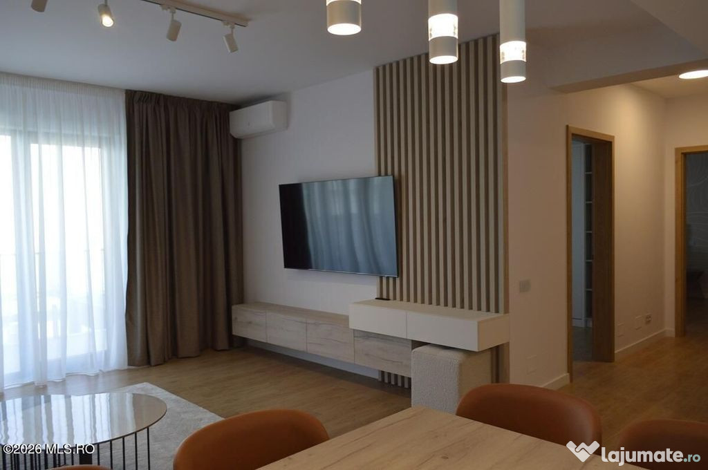 NORDMARK RESIDENCE - CARTIER NEGRU VODA, APARTAMENT 3 CAMERE - PARCARE. Situat in complexul Nordmark Residence, una dintre cele mai frumoase locatii ale orasului. Apartament luxos, elegant, cu panorama superba catre munte. Bloc cu acces controlat, parcare cu bariera. Interior cu design magnific, panorama splendida, compus din 2 dormitoare din care unul matrimonial cu baie proprie, dormitorul mic cu pat încastrat conferind un spatiu generos in functie de nevoi. Bucatarie openspace, living cu un balcon generos, mobilat si utilat superb!Confort: Lux