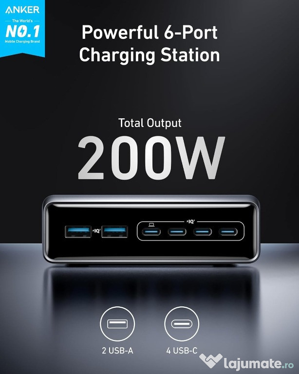 Anuntul NOUA! Statie incarcare telefon Anker Prime Charger (200W;6 Ports;GaN) este adaugat de pe LaJumate.ro.