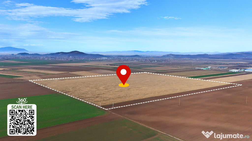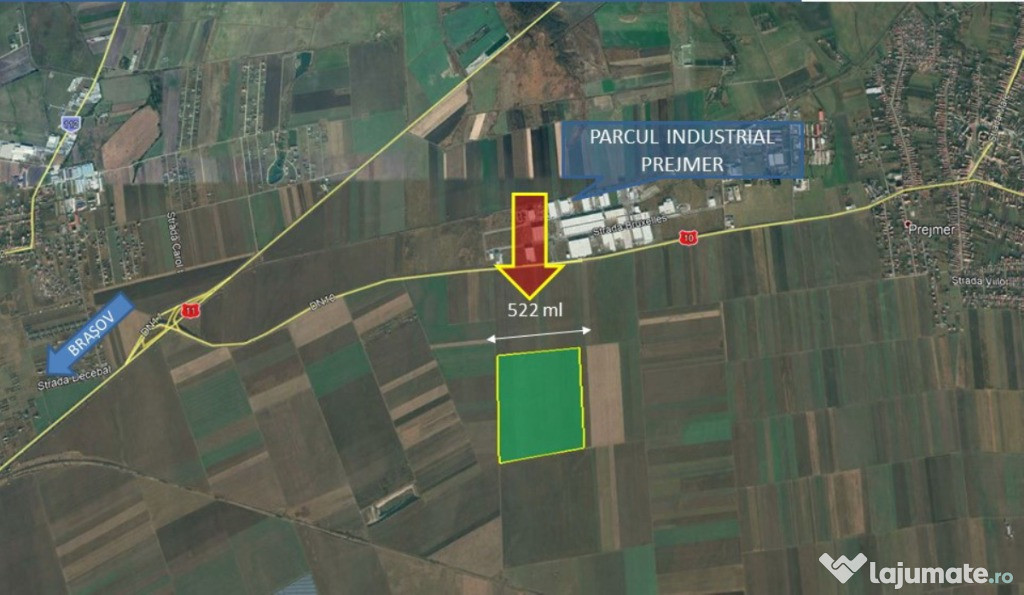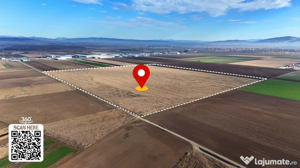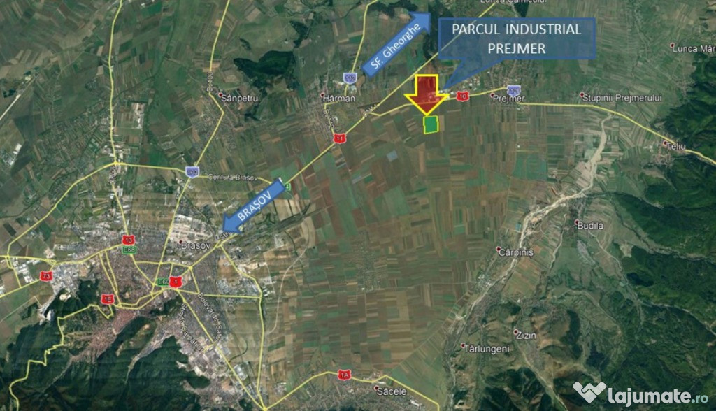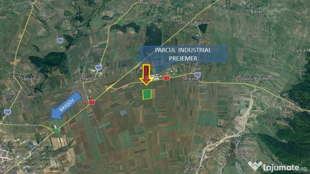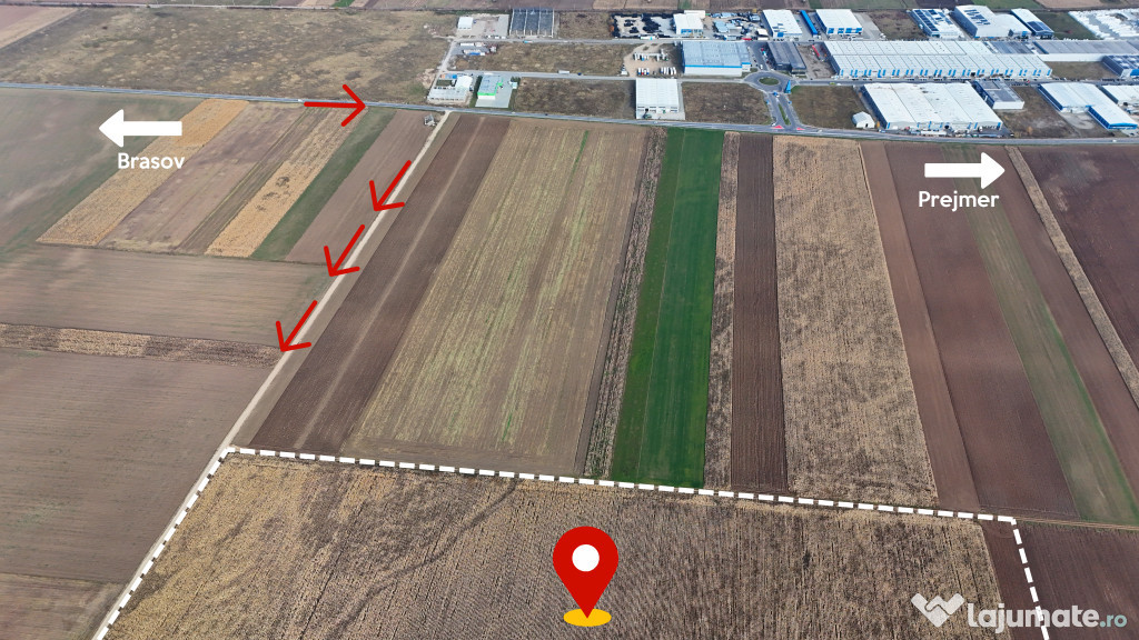 Teren in suprafata de 32.5 Ha compact, pretabil constructii industriale/ rezidentiale sau parc fotovoltaic, la numai 8 km distanta de Brasov. Amplasat la intrarea in localitatea Prejmer, vis a vis de Parcul industrial din localitate, retras cu 500 m(drum acces) fata de DN 10.Intabulat in CF, unic proprietar, actele OK.