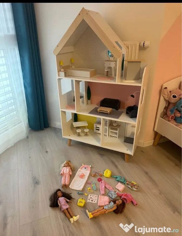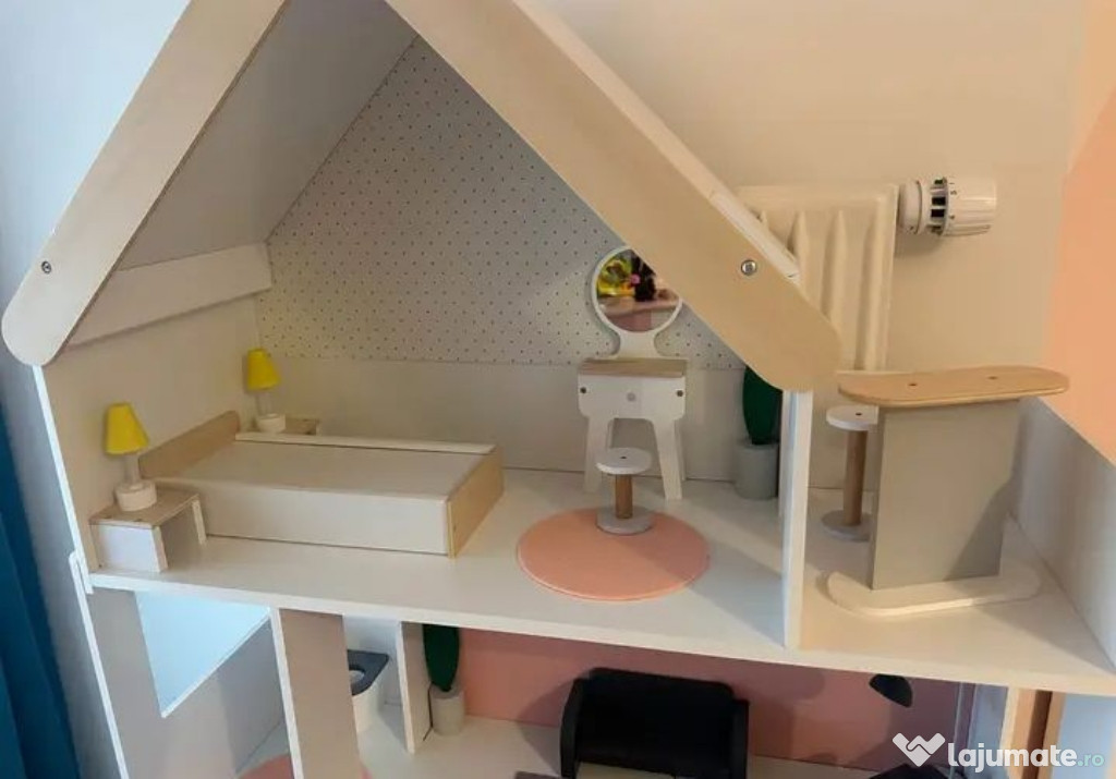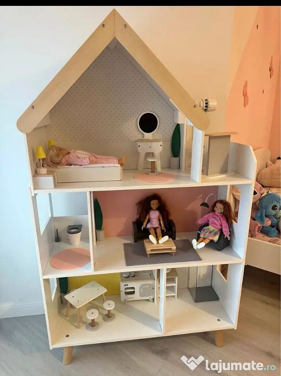 O casă de păpuși frumoasă, cu design modern, perfect dimensionată pentru păpușile de modă. Cu un dorm ...