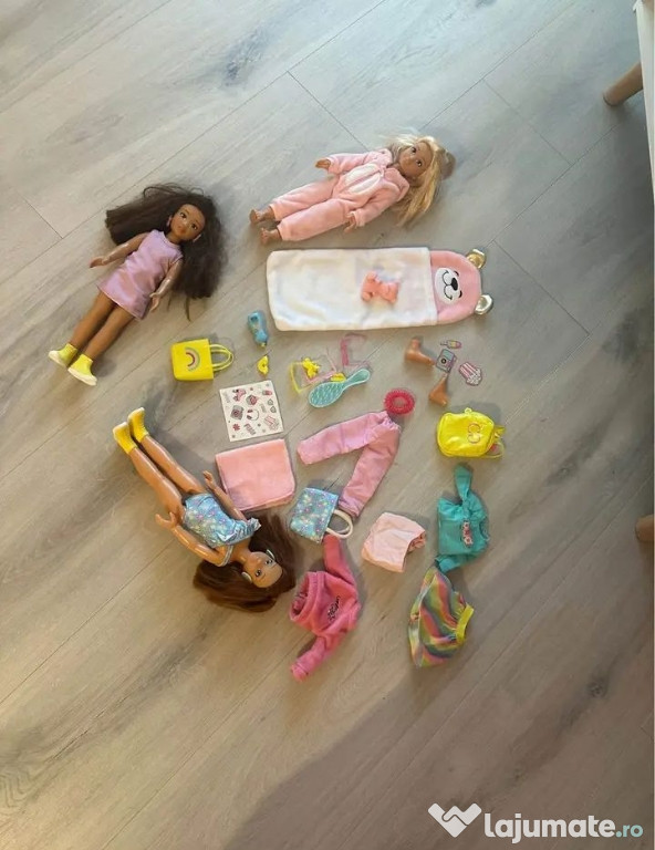 Vând un cărucior pentru păpuși cu o păpușă bebelușă, un marsupiu tip Maxi-Cosi și câteva accesorii. ...