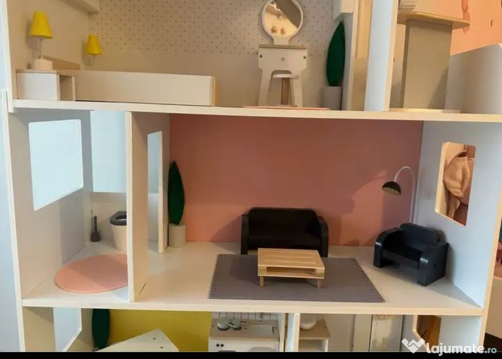 O casă de păpuși frumoasă, cu design modern, perfect dimensionată pentru păpușile de modă. Cu un dormitor, o cameră de zi și o sufragerie, copilul tău va petrece ore întregi imaginându-și puțină viață pentru păpușile sale, datorită numeroaselor accesorii incluse.DIMENSIUNI