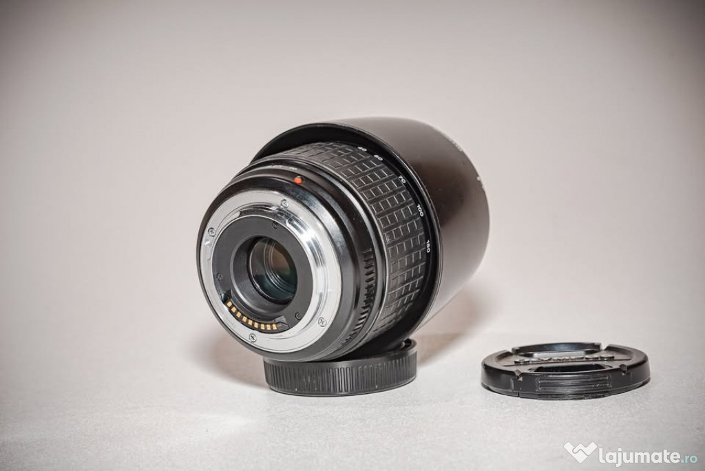Obiectivul este în stare bună, fără zgârieturi pe lentile sau alte defecte. Vine cu capacele originale și parasolar.