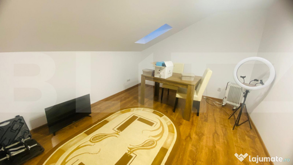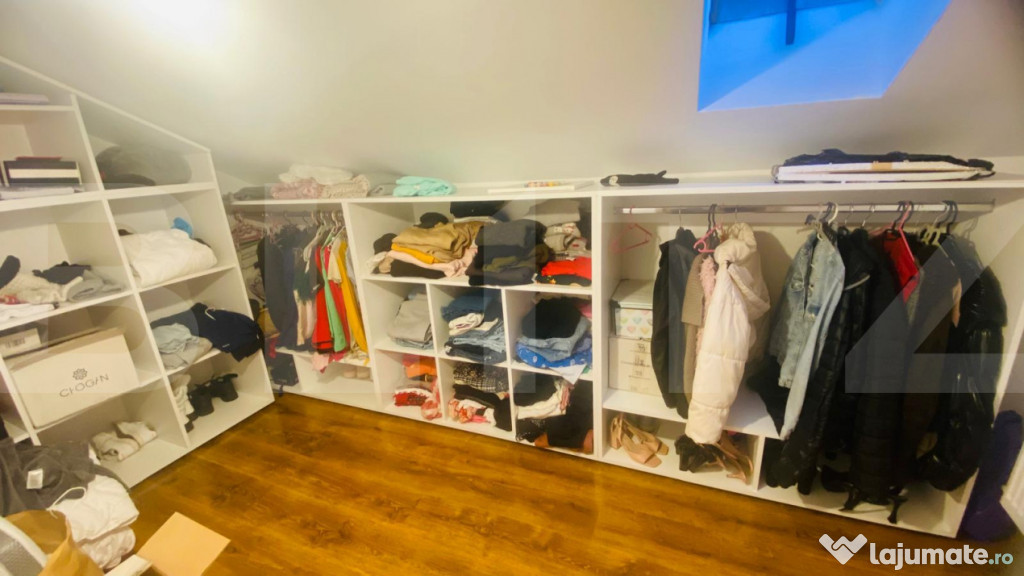 - Spațiu generos: Dispus pe etajul 3 și mansardă, apartamentul oferă zone distincte pentru relaxare, depozitare și lucru de acasă.