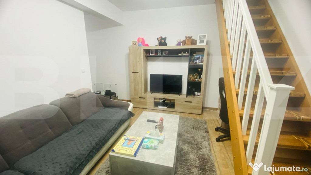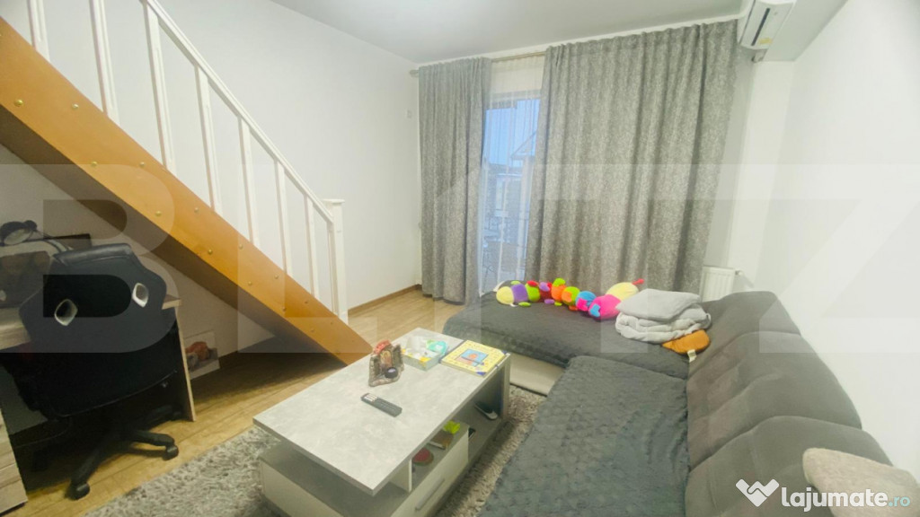 Blitz Imobiliare va propune spre vânzare un apartament deosebit, situat într-o zonă aflată în plină dezvoltare, la granița dintre Timișoara și Giroc (acces facil din Calea Urseni). Finalizat în anul 2019, acest imobil îmbină designul modern cu o compartimentare inteligentă pe două niveluri, oferind intimitatea și spațiul unei case.De ce să alegi această proprietate?