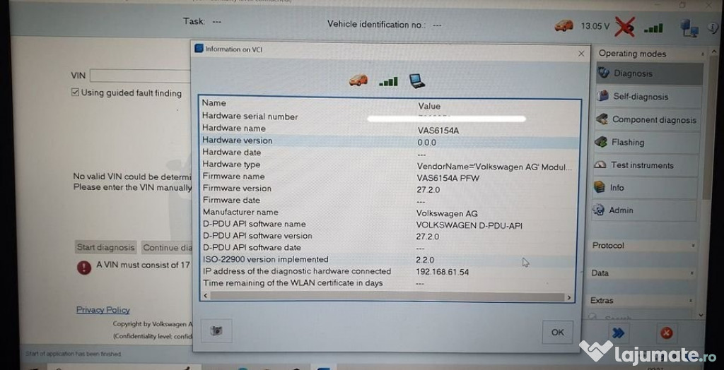 Anuntul Odis vag vas 6154 laptop diagnoza originala este adaugat de pe LaJumate.ro.