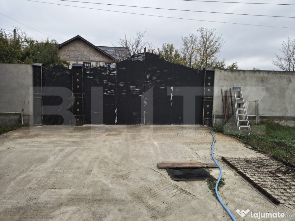 Curte spațioasă, parțial amenajată, cu acces auto și poartă metalică