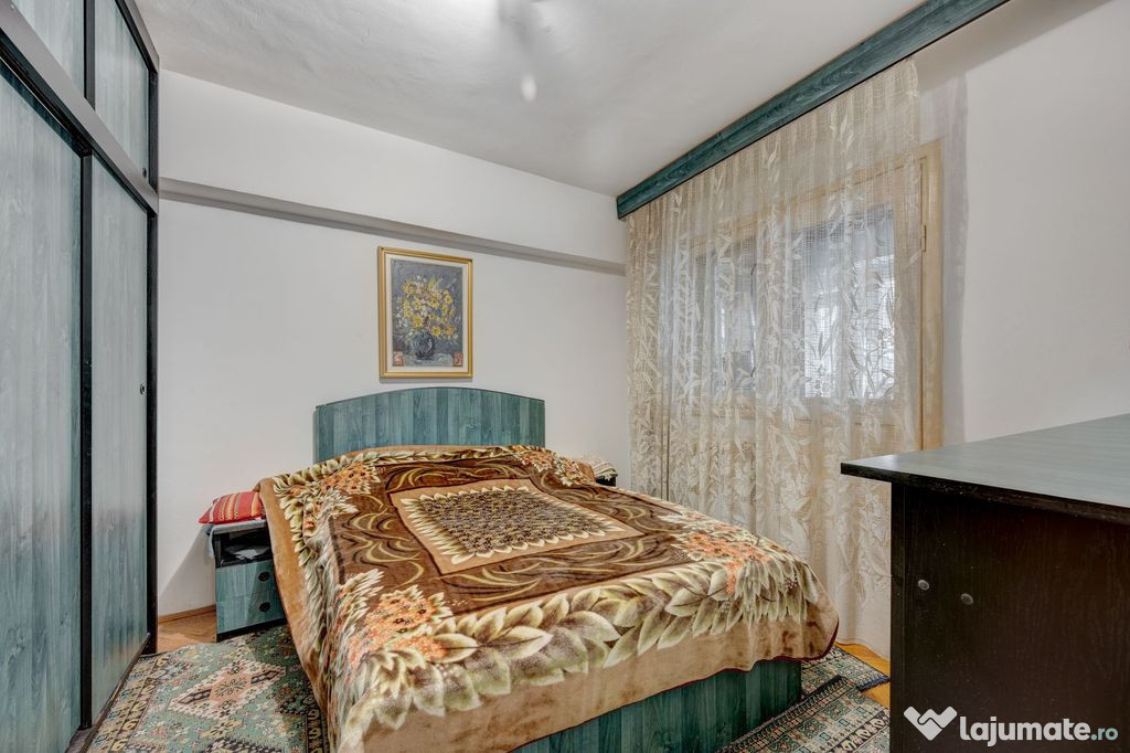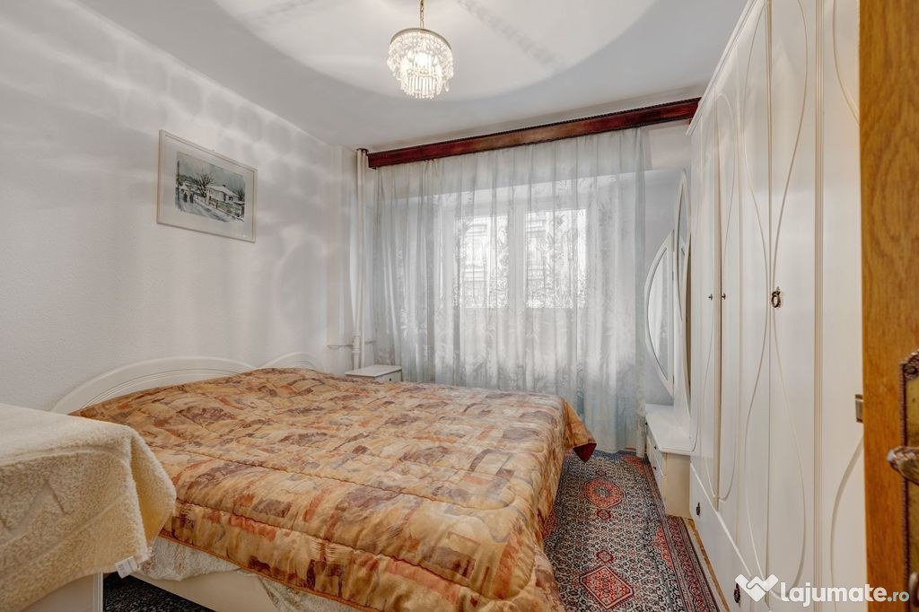 Interiorul este bine compartimentat și include un living generos, trei dormitoare încăpătoare, o bucătărie separată, două băi și spații de depozitare utile, oferind funcționalitate și confort pentru întreaga familie. Apartamentul este mobilat în stil clasic și necesită reamenajare, oferind viitorului proprietar libertatea de a-l personaliza complet după propriul gust.