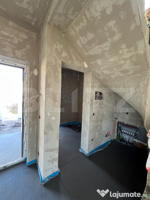 BLITZ vă oferă o casă într-o zonă de excepție a localității Chinteni, cu 3 dormitoare, living spațios și luminos, bucătărie, 2 băi spațioase, garaj și teren amenajat cu gazon. Pentru edificarea imobilului s-au utilizat doar materiale premium atât pentru finisajele exterioare cât și interioare. Podul este izolat termic cu vată minerală pentru un confort ridicat iar încălzirea este realizată în pardoseală eficientă. Priveliștea din locuință este una de excepție și vă oferă totodată liniștea și relaxarea de care aveți nevoie după o zi încărcată la locul de muncă. Pentru familiile care vor să petreacă timp în curte sau cu copiii imobilul dispune de un teren generos lângă casă de 250mp. Casa se predă în stadiu semifinisat. Vă așteptăm la vizionare cu brokerii BLITZ!Cod ofertă / ID BLITZ: P157540
