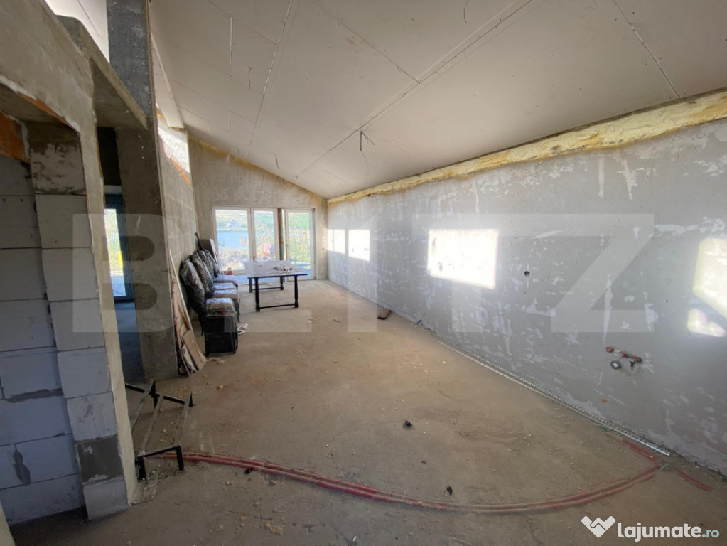 Oportunitate! Casă unifamilială semifinisată, P+M, 100 mp