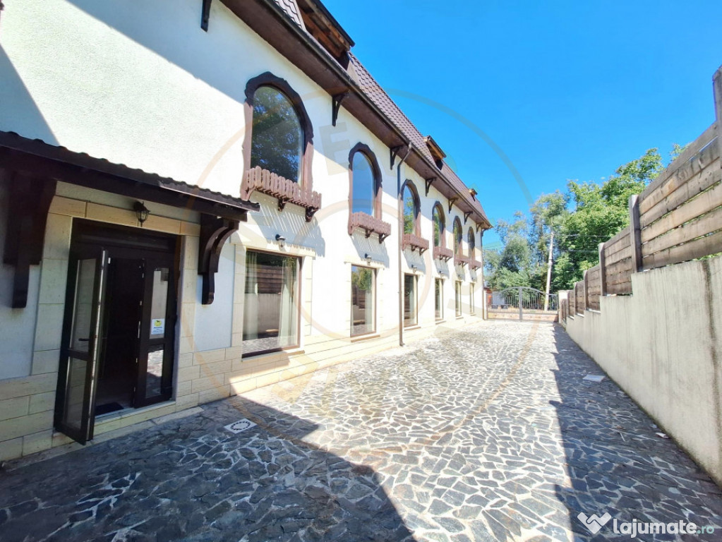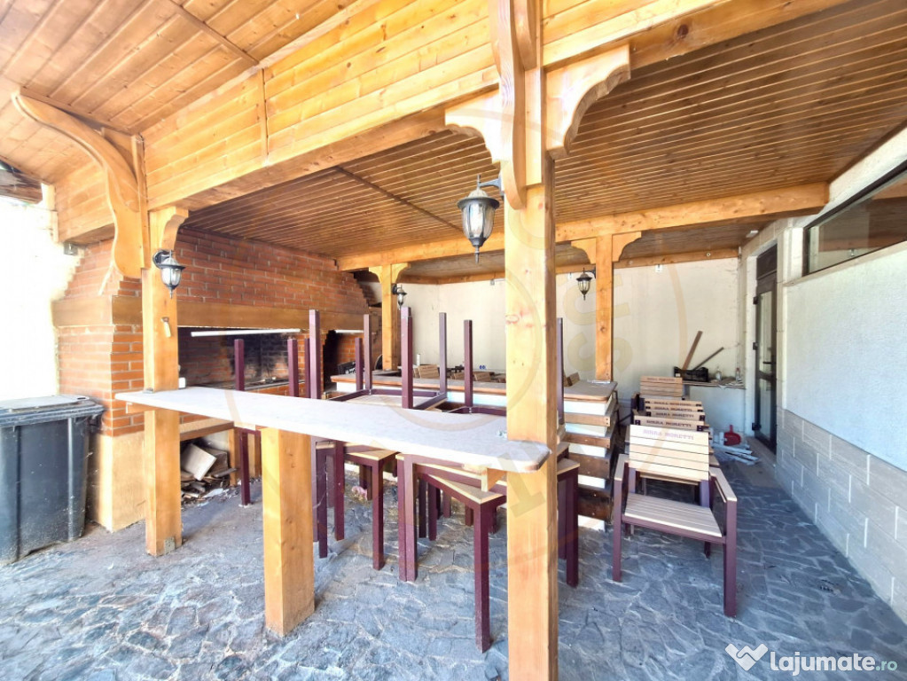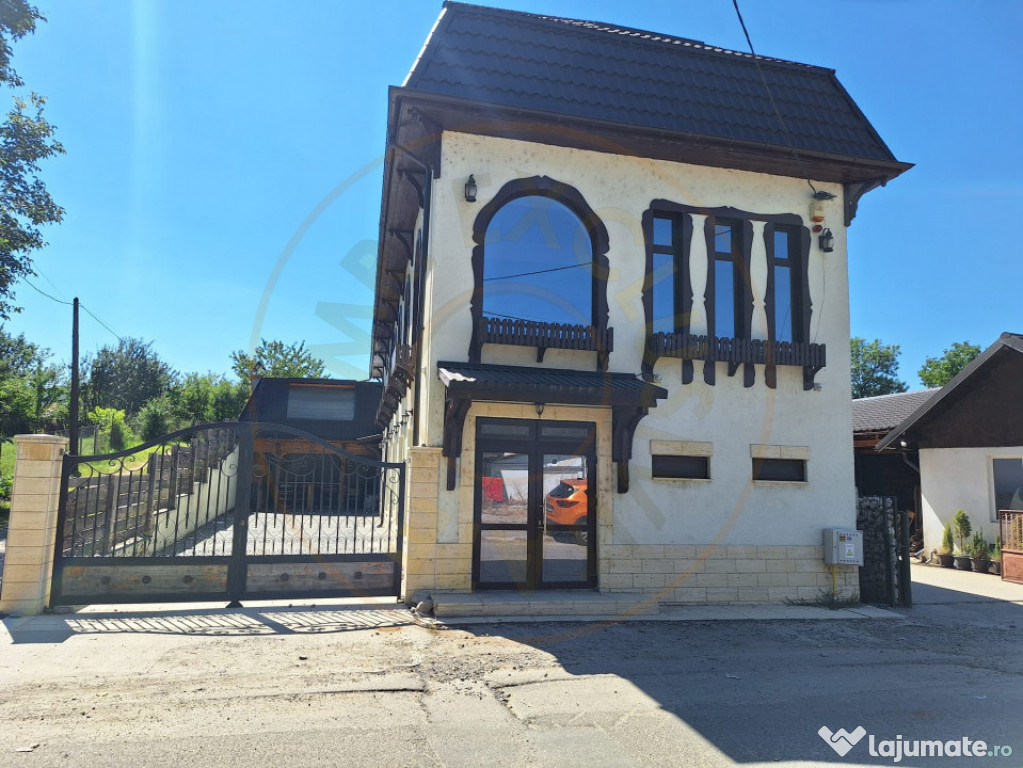 Se oferă spre vânzare o clădire P+1+ M cu destinație comercială, construită pe structură solidă de cadre, ideală pentru desfășurarea de activități în domeniul HoReCa (restaurant, evenimente, cafenea, bar) sau alte funcțiuni comerciale. ✅ Clădirea este pregătită pentru funcționare imediată și reprezintă o oportunitate excelentă pentru investiție, datorită poziționării strategice – chiar la intrarea în târgul săptămânal din Domnești, Argeș. Date tehnice și structură fundație robustă cu stâlpi 0,5 m x 0,5 m și armături de 25 mm, 22 mm și 16 mm; placă turnată continuu cu două rânduri de armătură; pereți din BCA, izolați cu polistiren grafitat de 10 cm; finisaje: pereți tencuiți + lavabilă, pardoseală din gresie porțelanată trafic intens; scara interioară din piatră marmură maro satinat; bucătărie complet placată cu faianță albă modernă. Compartimentare și dotări interioare 3 grupuri sanitare: personal: WC + duș + vestiar, bărbați: 2 cabine WC (termopan), femei: 2 cabine WC (termopan). instalații electrice și sanitare separate pe zone și etaje; contract curent trifazic 380V, tablouri separate pe bucătărie/parter/etaj/mansardă, comutator automat faze. Sisteme de siguranță și confort sistem antiefracție cu centrală și senzori (3 zone, interior/exterior); sistem antiincendiu cu senzori pe fiecare nivel și în bucătărie; monitorizare video cu 16 camere + centrală 2TB; apă și canalizare la rețeaua centralizată, boilere și instant pentru apă caldă, uscătoare de mâini, baterii cu senzor; posibilitate branșare gaze (cutia pe fațadă).Id intern: P7908