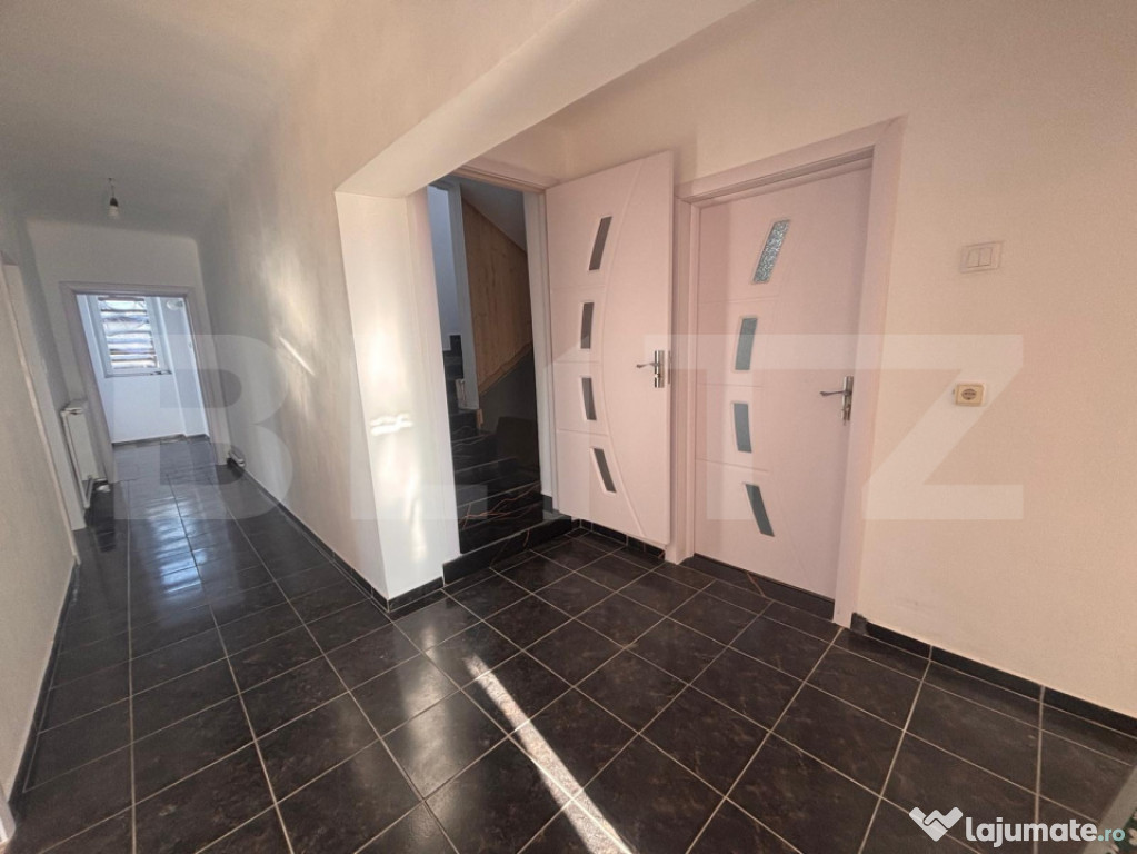 Blitz vă propune sediul ideal pentru afacerea dumneavoastră! Un duplex senzațional cu o suprafață totală de 320 mp, distribuit generos pe două nivele a câte 160 mp. La fiecare nivel veți beneficia de 3 camere foarte mari, 1 baie, 1 bucătărie cu anexă, 2 terase cu vedere panoramică ( pretabile pentru zonă de așteptare sau spațiu de fumat). Proprietatea dispune de o curte mare de 800 mp pe care o puteți folosi pentru a oferi clienților loc de parcare. În exterior, se regăsește o anexă ideală pentru depozitarea materialelor sau a documentelor ( arhivă) dar și o pivniță/beci cu intrare prin spatele casei. În ideea de a facilita intrarea clienților dumneavoastră pe sectoare de servicii, aveți la dispoziție intrare interioara și exterioară pentru etaj. Proprietatea se află în apropierea centrului comercial de lângă LIDL Găești, stație de autobuz, școli, farmacii și magazine. Pentru vizionare și detalii, apelați cu încredere Blitz Imobiliare!Cod ofertă / ID BLITZ: P161673
