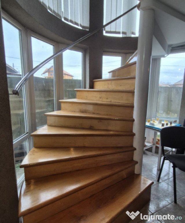 • scară interioară metalică placată cu lemn de stejar