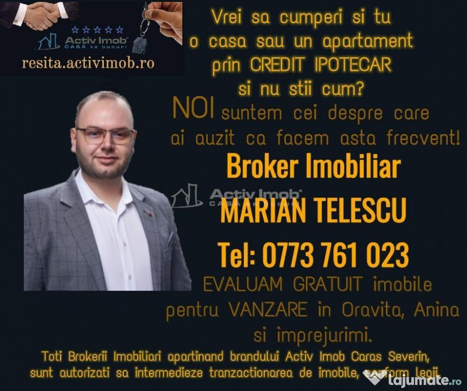RECOMANDARE: PENTRU A VIZUALIZA TOATE OFERTELE SI A PRIMI NOTIFICARI CU NOILE OFERTE, VA RUGAM SA SOLICITATI CERERE DE PRIETENIE PE FACEBOOK: Imobiliare Marian Telescu Oravita-Anina SAU TIKTOK: Telescu Imobiliare .