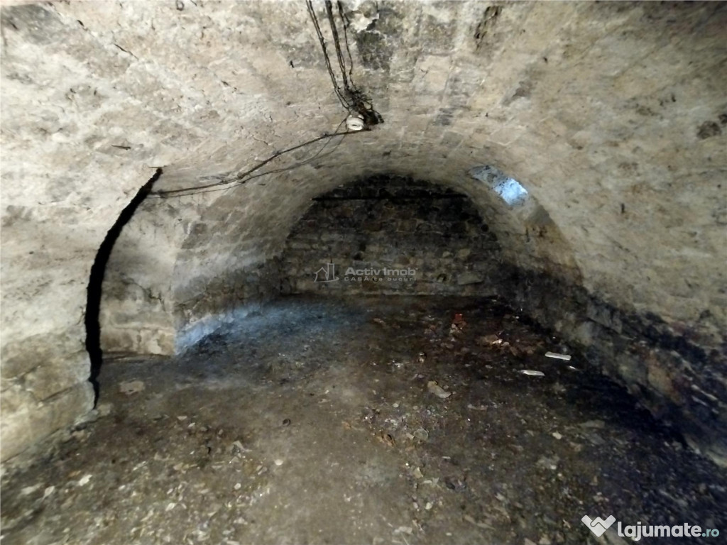- Beciul - are o suprafata totala de circa 50mp, are ziduri de 1,5m grosime, inclusiv fundatia casei. Din beci exista acces direct in spatiul comercial. Aici se regaseste si o fantana neamenajata. Accesul se face prin curtea imobilului.