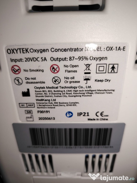 De vanzare concentrator de oxigen model Oxytek ox-1a-e pefect din toate punctele de vedere, deţin toa ...