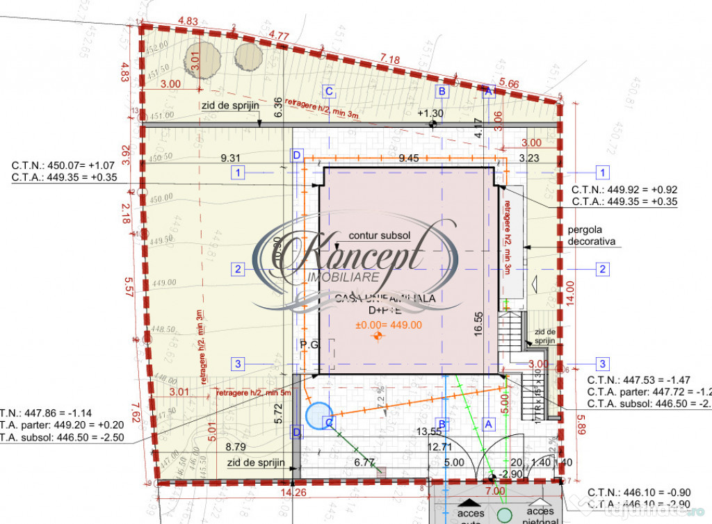 Koncept Imobiliare va ofera spre vanzare un teren autorizat pentru casa individuala, situat in satul Tauti, comuna Floresti, intr-o zona linistita, aerisita, cu acces rapid catre Floresti si Cluj-Napoca. Parcela are o forma patrata si beneficiaza de o pozitionare usor inaltata fata de proprietatile din jur, ceea ce asigura lumina naturala pe tot parcursul zilei, intimitate si o panorama placuta spre zone verzi. Accesul se face de pe o strada privata pietruita, retrasa de la drumul principal, la doar 70 de metri, oferind un cadru discret, dar in acelasi timp foarte accesibil. Terenul are o suprafata de 483 mp si dispune de autorizatie de construire pentru o locuinta unifamiliala cu regim de inaltime D+P+1, cu o suprafata utila proiectata de 186.88 mp si o curte libera de aproximativ 380 mp. Conform proiectului, casa include un garaj subteran cu doua locuri de parcare, precum si posibilitatea de a parca inca doua masini in curte. La parter sunt prevazute living, dining, bucatarie, baie si hol, iar etajul este gandit pentru zona de noapte, cu trei dormitoare, doua bai si doua dressinguri. Autorizatia este deja emisa, insa proiectul poate fi adaptat in functie de preferintele viitorului proprietar, in limitele reglementarilor urbanistice existente, pe care le respecta integral. Toate utilitatile sunt aduse la frontul parcelei – gaz, apa, curent si canalizare – existand deja studiu geotehnic, ceea ce permite demararea rapida a lucrarilor. Zona se remarca printr-un mix placut de case noi si vechi, vegetatie, privelisti deschise si o atmosfera calma, potrivita pentru cei care apreciaza un stil de viata relaxat, aproape de natura, fara a renunta la accesibilitatea spre oras. Pozitionarea terenului combina armonios intimitatea oferita de strada retrasa cu avantajul unei conexiuni rapide catre Floresti si Cluj-Napoca, facand din aceasta proprietate o alegere excelenta atat pentru locuinta personala, cat si pentru un proiect rezidential premium. Recomandam aceasta proprietate celor care isi doresc sa construiasca o casa individuala moderna intr-o zona in continua dezvoltare, cu un proiect deja aprobat, cu posibilitatea de personalizare si cu beneficii reale in ceea ce priveste calitatea vietii, accesibilitatea si investitia pe termen lung. Vanzarea se face de pe persoana juridica, cu TVA adaugat. Pentru informatii suplimentare, programarea unei vizionari sau pentru a afla oferta noastra completa va stam la dispozitie telefonic, prin e-mail sau la sediul agentiei noastre, pe str. Aviator Badescu, nr. 19, Cluj-Napoca.Id intern: P21035