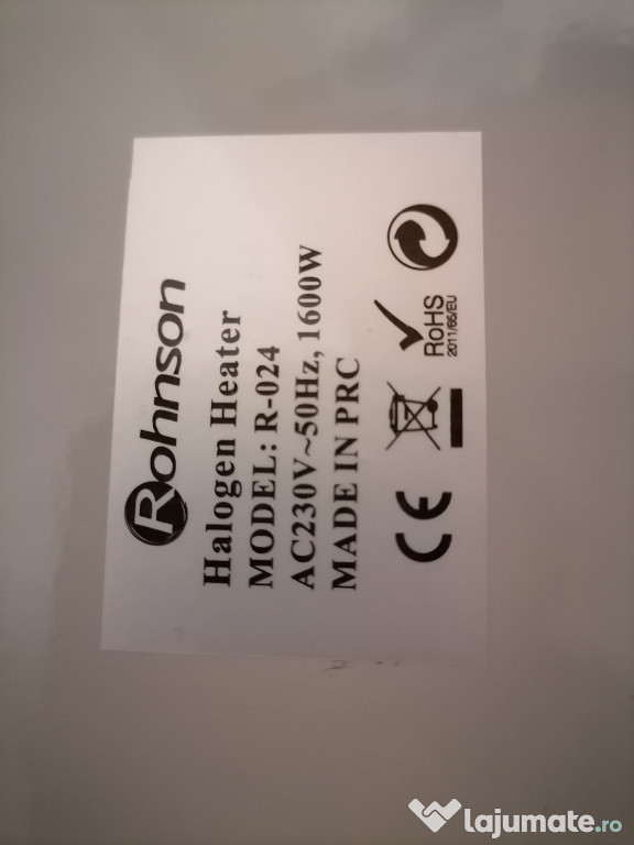 Radiator electric cu halogen marca Rohnson, putere 1600W, cu patru rezistențe de încălzire, fiecare cu o putere de 400W. Rezistențele se pot folosi una câte una, în funcție de căldura dorită.Anuntul Radiator electric cu halogen este adaugat de pe LaJumate.ro.
