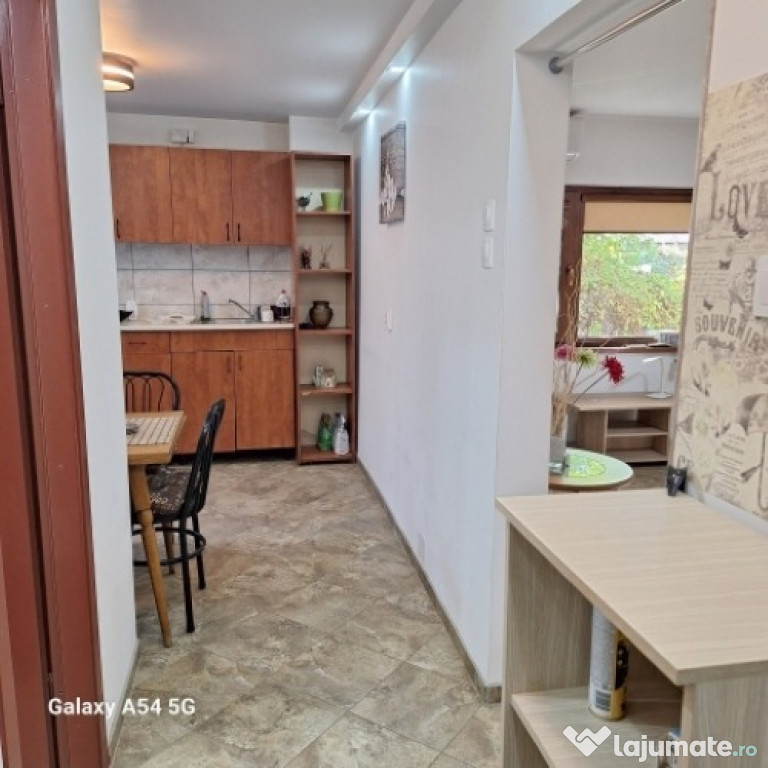 Garsoniera este spatioasa, are AC desi, fiind la parter, nu este foarte cald vara. Canapeaua este recent cumparata, extensibila si foarte comoda. Are si o canapea mica in zona de relaxare/cafea. Bucataria este mare, baia cu dus si geam!