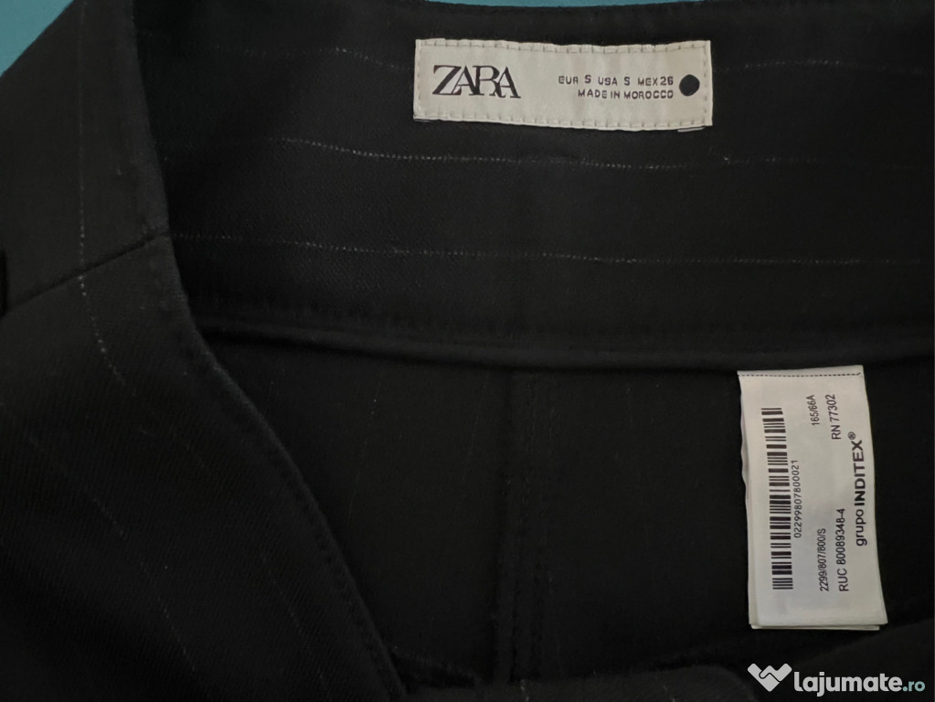 Pantaloni Zara, mărimea S, noi fără etichetă, culoare neagră cu dungi subțiri gri. Model modern, larg ...
