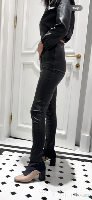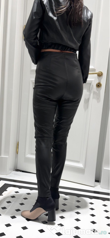 Pantaloni lungi din piele ecologică,noi , Zara, mărimea S, slim , pe corp, se închid cu fermoar later ...