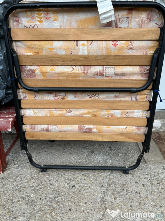 Pat pliabil cu roți pentru o persoană, în stare de bună cu mici urme de folosință ideal pentru oaspeț ...