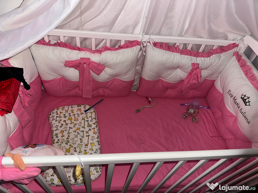Pătuț cu sertar+saltea+lenjerie,baldachin