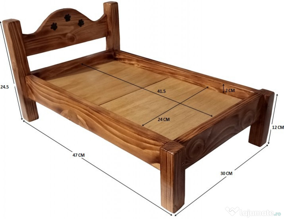 Pătuțul este trainic fiind realizat din lemn cu grosimea de 1.8cm si are pirogravat un model cu labute.