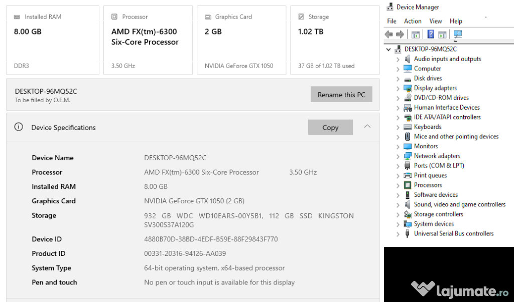 Are instalat Windows 10 cu licenta, cu update si drivere la zi.