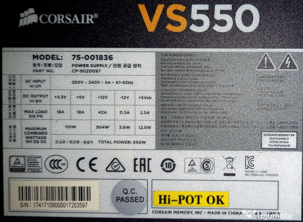 Sursa de alimentare: Corsair VS550, 550W HQ