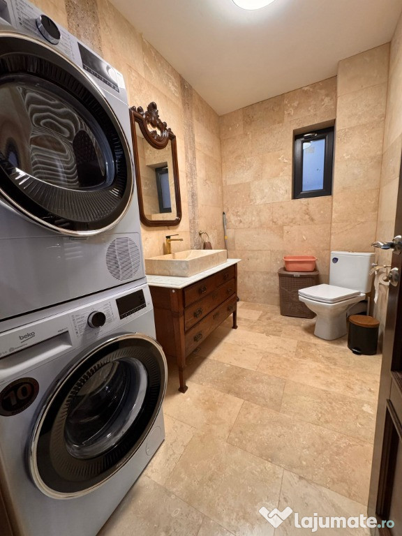- etaj 1 : hol, 2 bai, 3 dormitoare (unul matrimonial cu baie si dressing ).